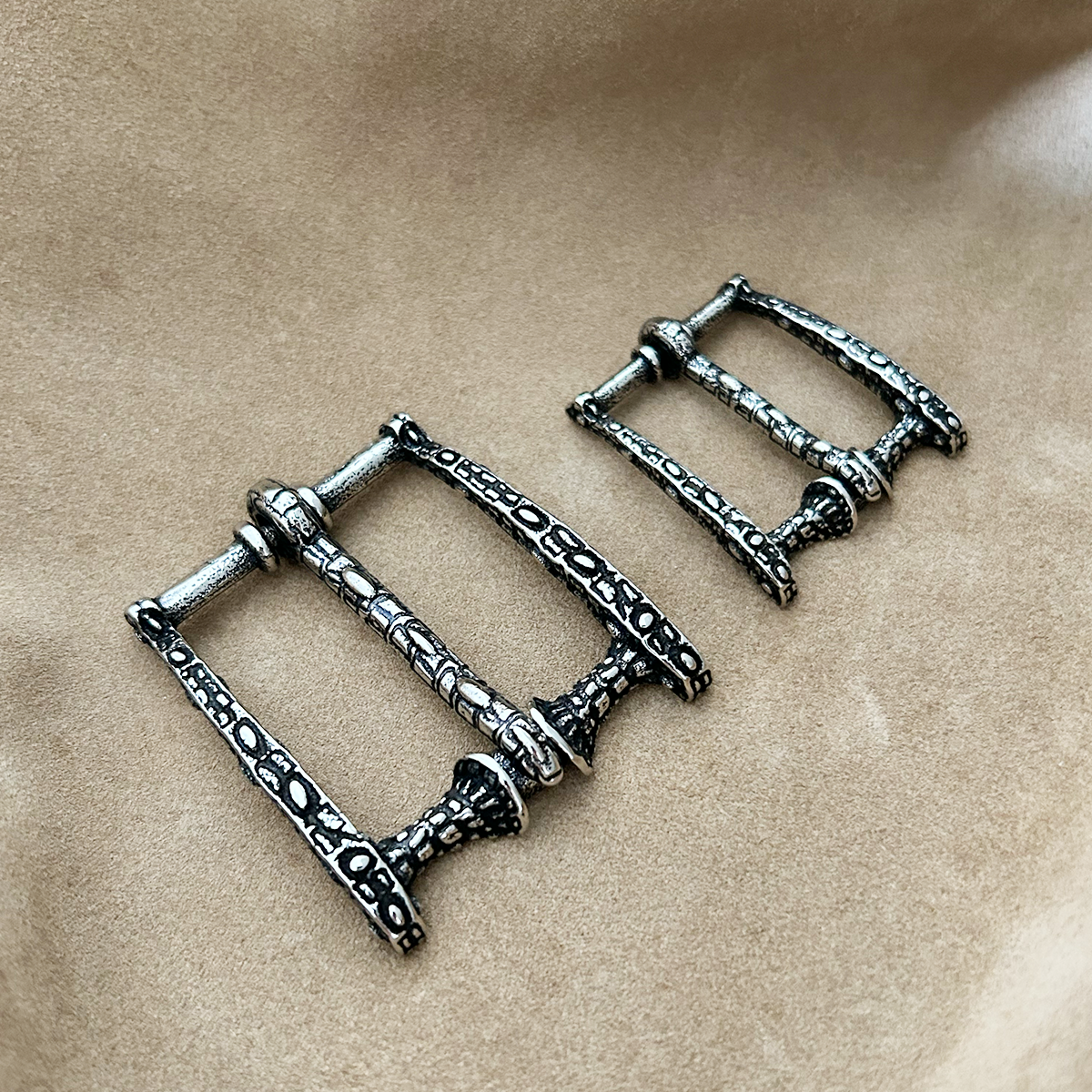 Per l’appunto l’ottone prenderà il posto della cera realizzando gli ardiglioni che completano le fibbie.