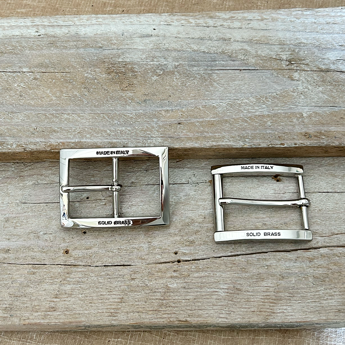 Abbiamo realizzato una fibbia diversa con una particolarità unica: abbiamo inciso sul fronte della fibbia la dicitura Made in Italy e Solid Brass.